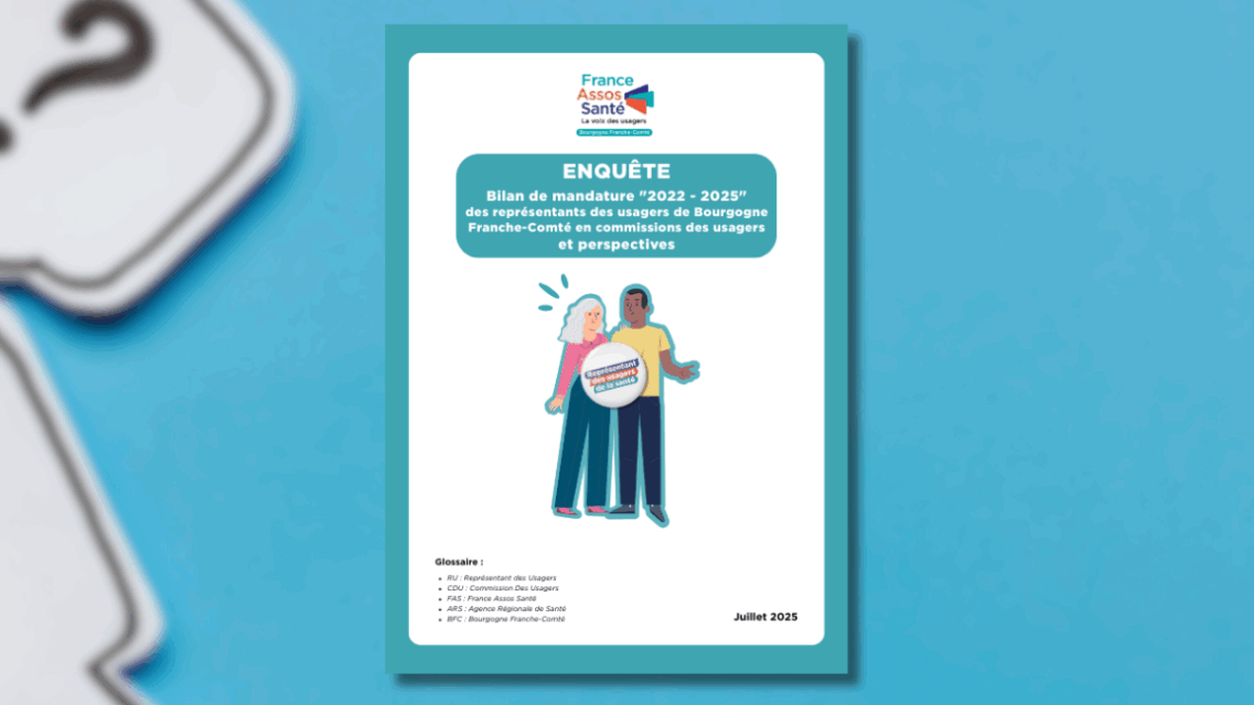 Les résultats de cette enquête, consultables dans leur intégralité ici, viendront alimenter différentes pistes de travail explorées par les instances de France Assos Santé BFC et le service de démocratie en santé de l’ARS.